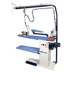 Ligado a uma rede de ar comprimido central, a mesa funciona através de um sistema aspirante de líquidos e produtos acionados por pedal, o que proporciona um trabalho localizado sobre a mancha.